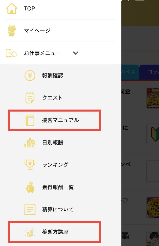 左上のメニューをタップすると接客マニュアルをチェックできます✔️